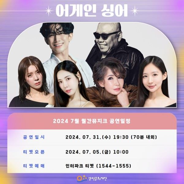 7월 31일 양천문화회관 대극장에서 '월간뮤지크 : 어게인 싱어' 공연을 개최한다.